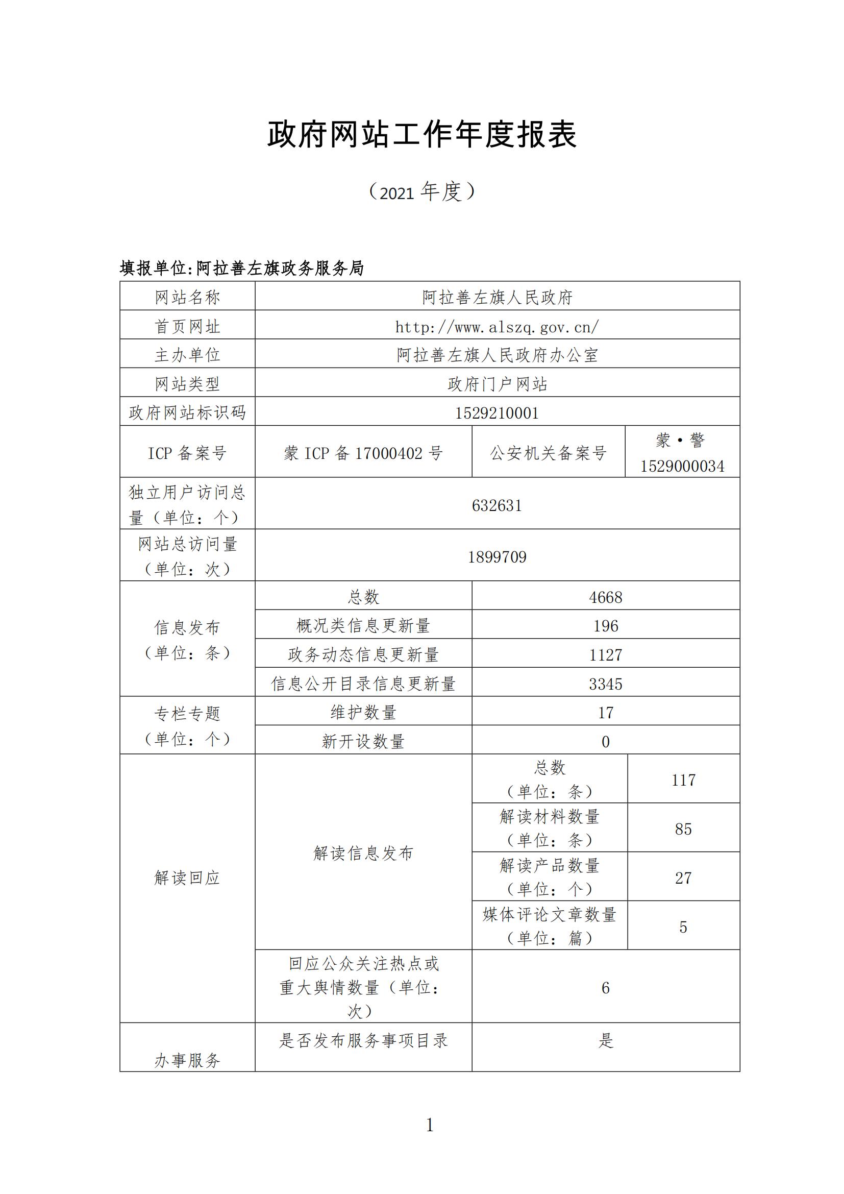 2021年阿拉善盟阿拉善左旗人民政府網站工作年度報表