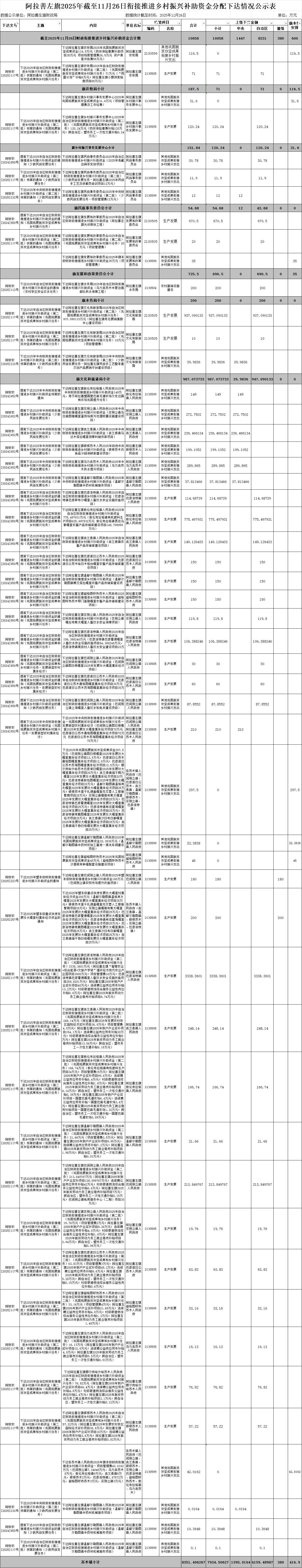 根據《內蒙古自治區人民政府關于進一步加強自治區財政銜接推進鄉村振興補助資金使用管理的意見》(內政辦〔2022〕9號)有關規定,現將阿左旗2025年截至11月26日財政銜接推進鄉村振興補助資金分配下達情況公示如下: