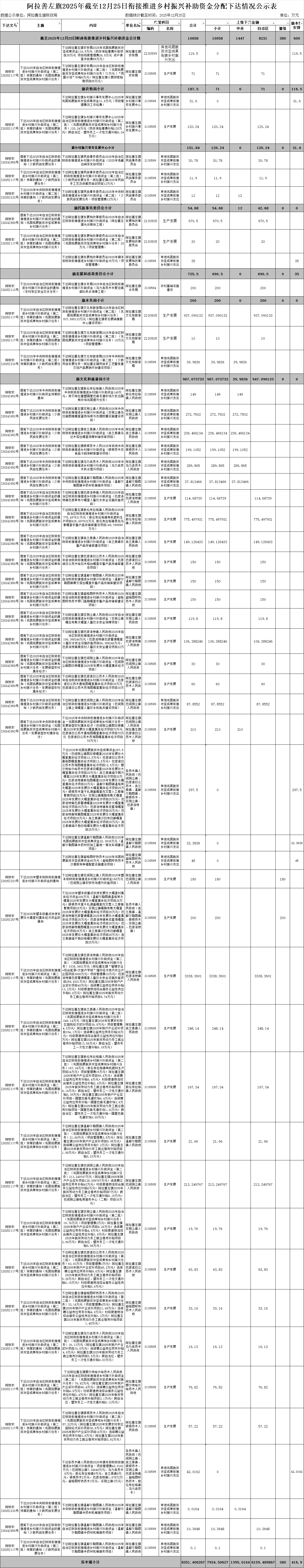 二、截至12月25日,阿左旗財政部門下達財政銜接推進鄉村振興補助資金情況