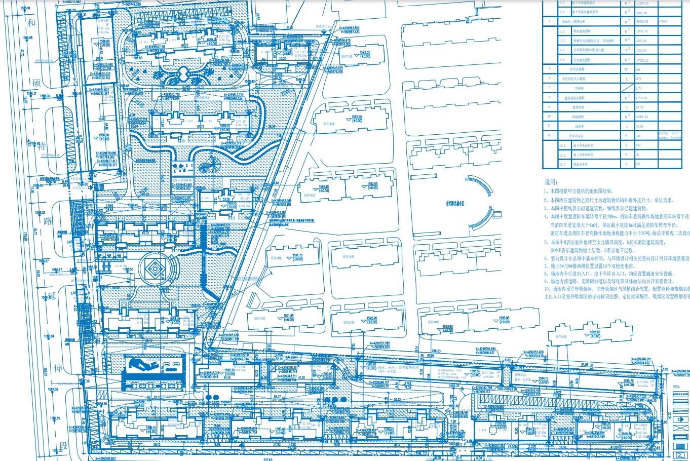 原審批規劃指標:規劃用地面積49945.99平方米,總建筑面積124700.33平方米,地下室建筑面積35727.79平方米,地面以上建筑面積88972.54平方米,容積率1.78,建筑基底總面積12099.04平方米,建筑密度24.22%,綠地面積14986.54平方米,綠地率30.01%,小車泊車位784個。其中住宅用地總平面經濟技術指標規劃用地面積46496.92平方米,總建筑面積111848.8平方米,地下室建筑面積35727.79平方米,地面以上建筑面積76121.01平方米,建筑基底總面積10147.93平方米;商業用地總平面經濟技術指標規劃用地面積3449.07平方米,總建筑面積12851.53平方米,建筑基底總面積1951.11平方米。