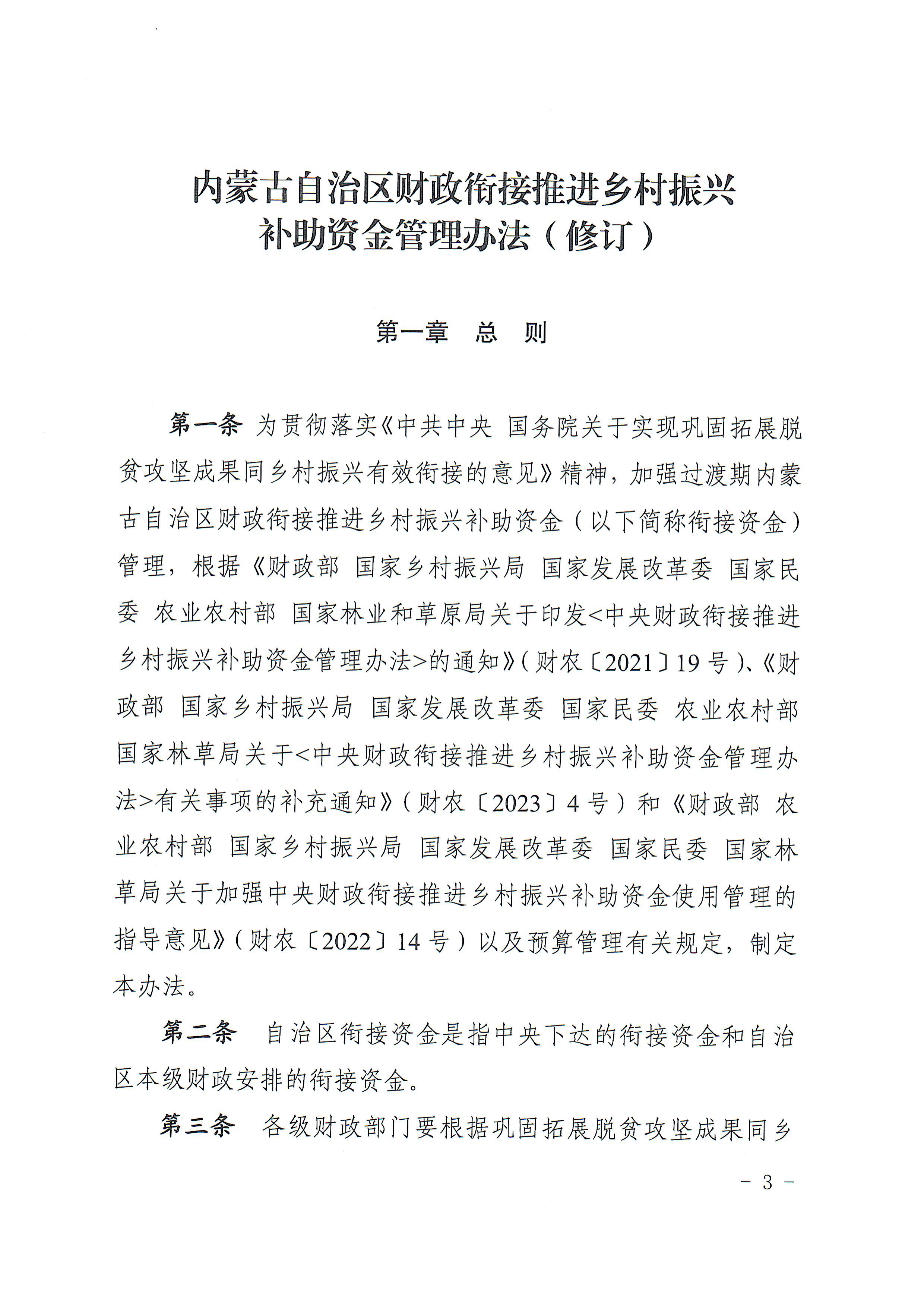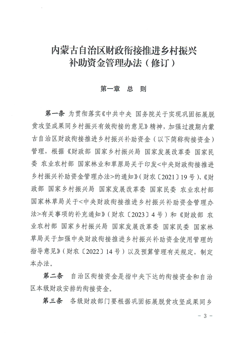 內蒙古自治區財政銜接推進鄉村振興補助資金管理辦法(修訂)