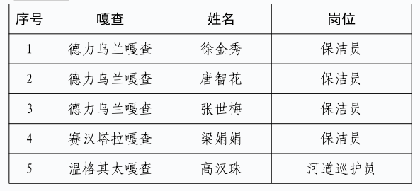 經審核,我鎮脫貧公益性崗位人員在聘期內工作表現良 好,符合續聘條件。經會議研究決定,同意續聘 5 名公益性 崗位人員,續聘期限自 2025 年 7 月 1 日起至 2025 年 12 月 31 日止。
