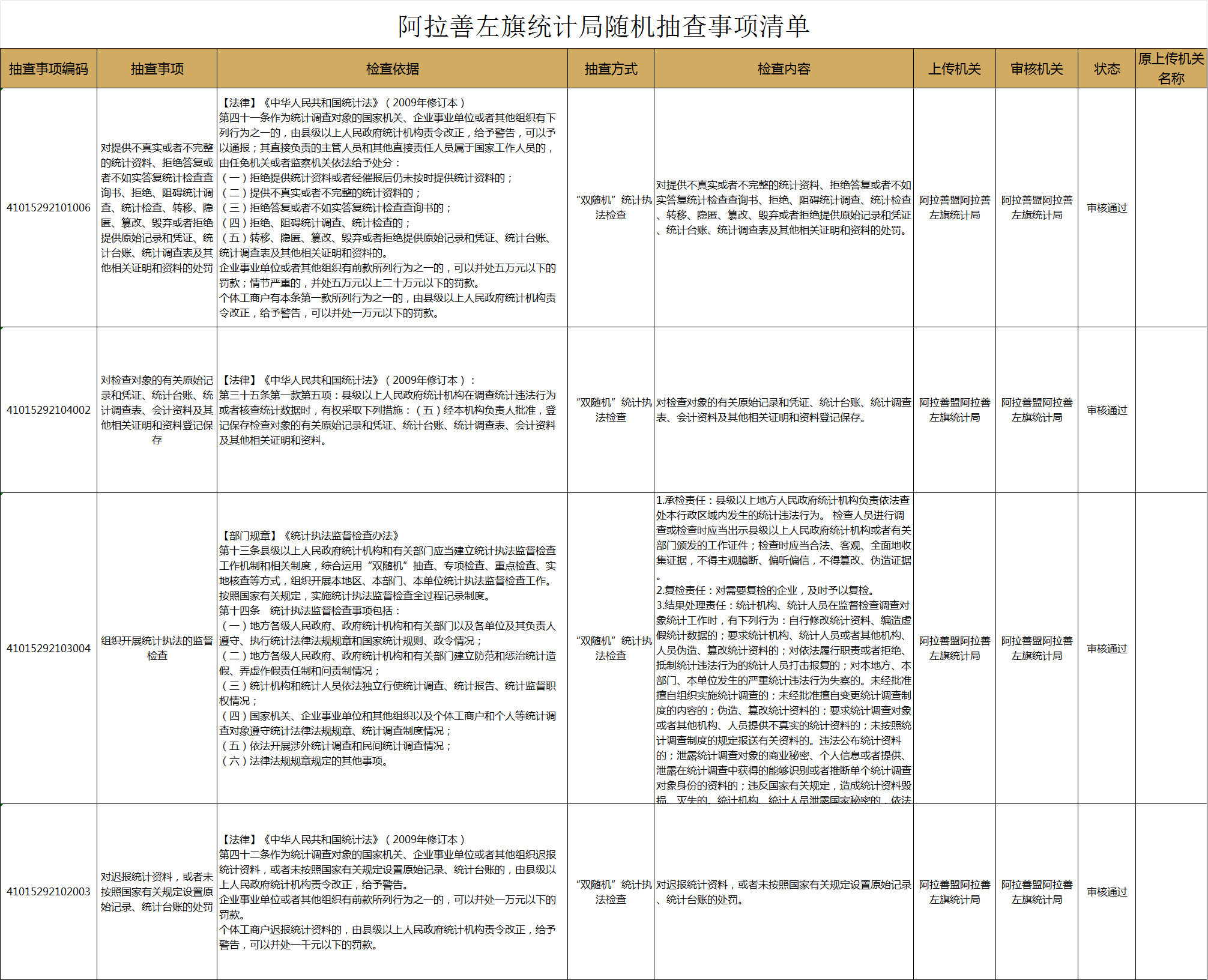2.阿拉善左旗統計局隨機抽查事項清單